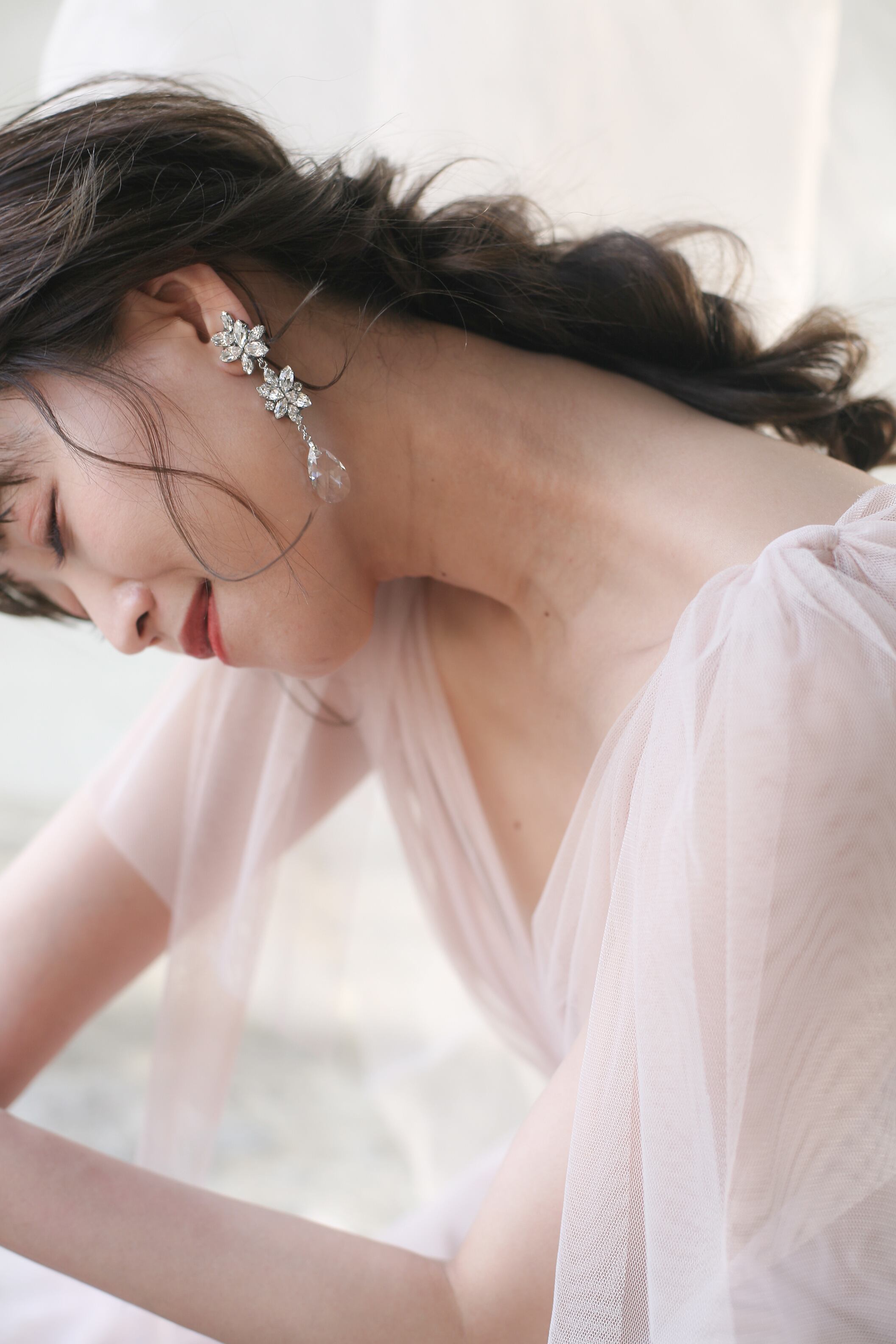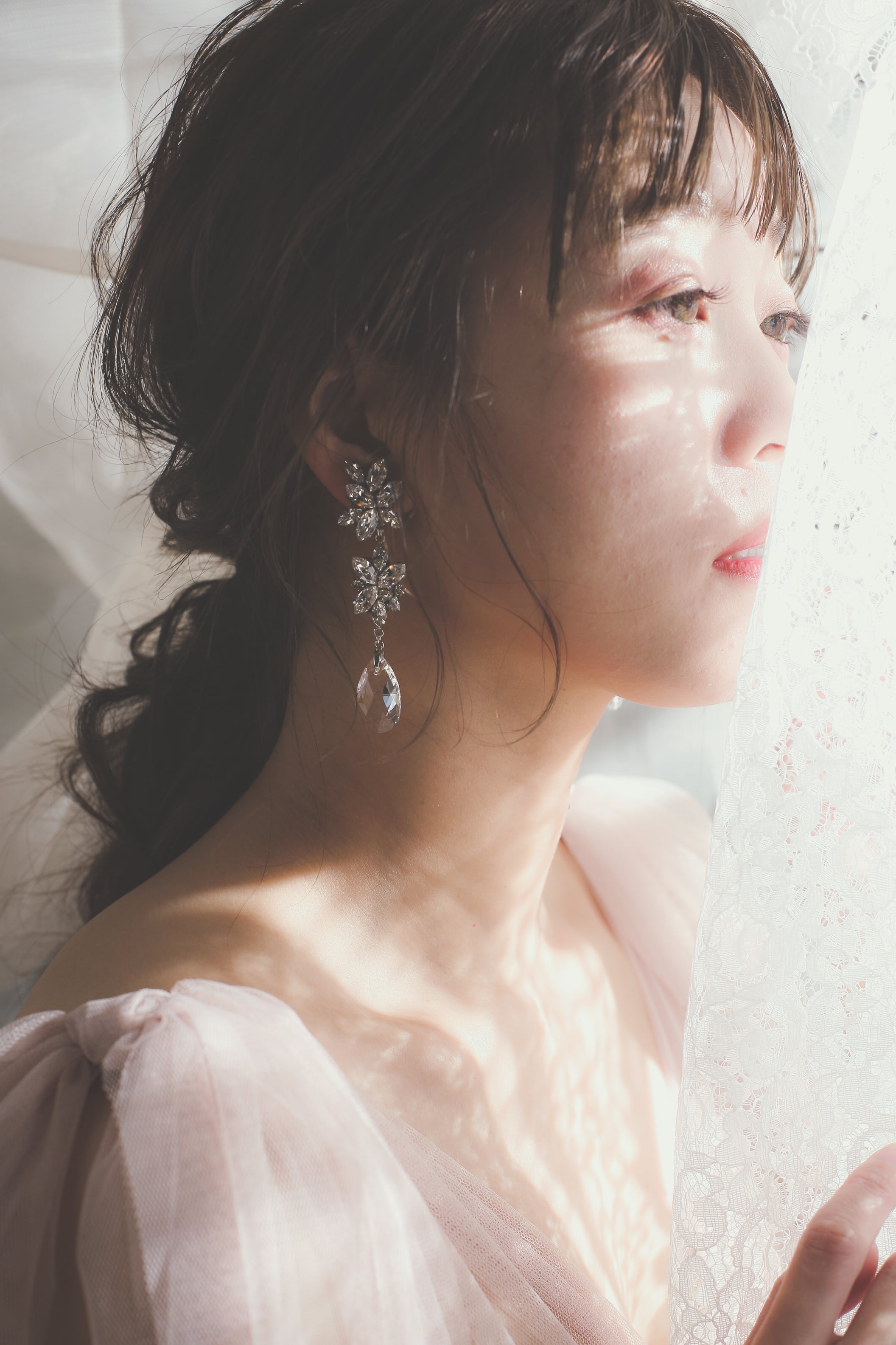 大小サイズの異なるマーキス型のクリスタルガラスでデザインされてるので写真に写ったときに繊細な印象に♡☻